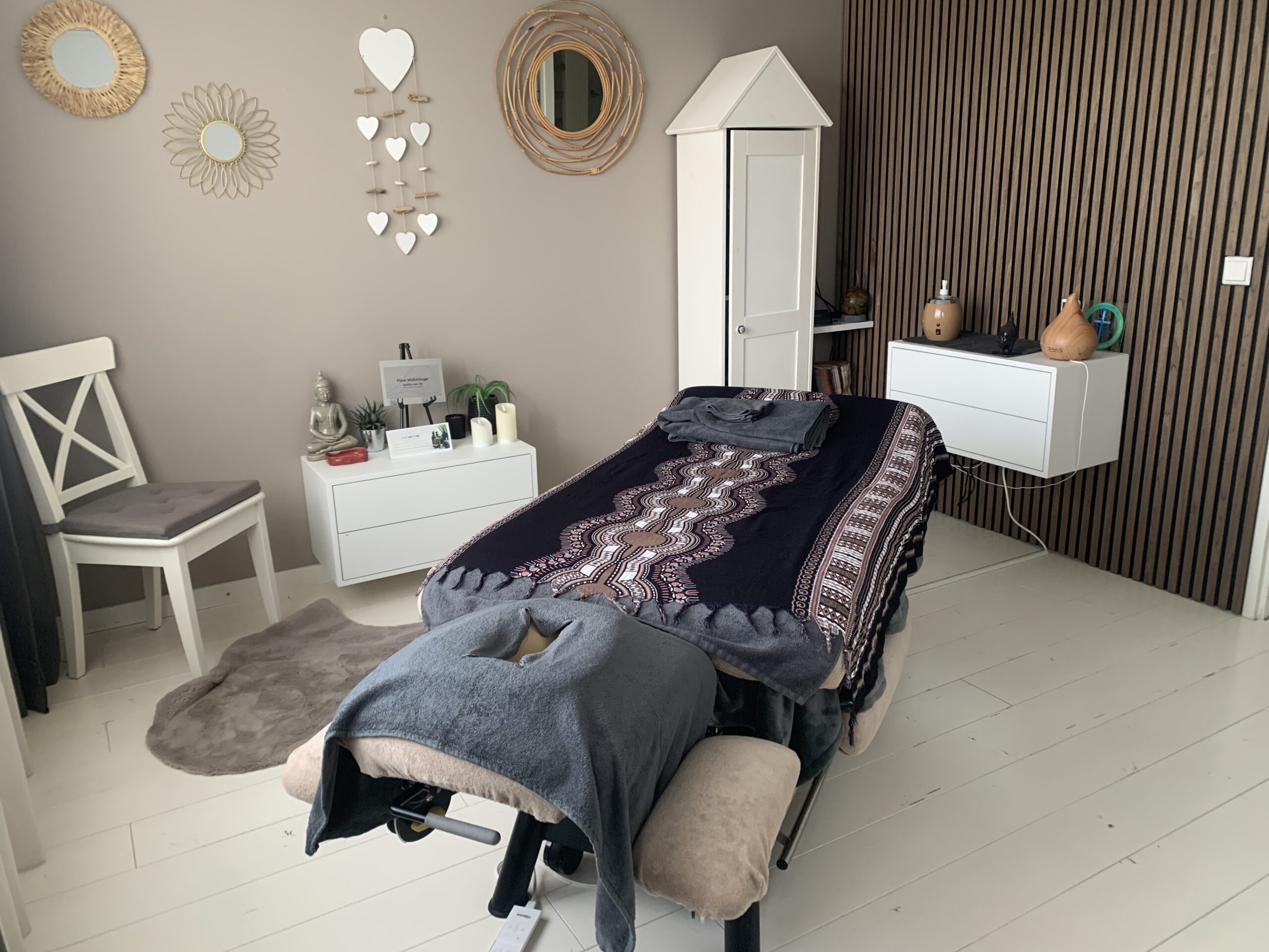In September 2022 heb ik de stoute schoenen aangetrokken en ben ik gestart met de opleiding Wellness Massage bij Mood Massage in Amersfoort. Hier heb ik eind mei 2023 met veel plezier en intensieve studie mijn diploma en verschillende certificaten behaald. Na de zomer van 2023 ben ik gestart met mijn eigen massagepraktijk aan huis waar ik heel blij mee ben. Ik heb thuis een fijne rustgevende plek gecreëerd waar ik ook jou hoop te mogen ontvangen.